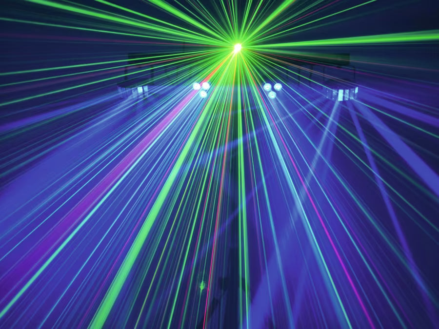 Lichtquelle: 2 Laserdioden Rot 650 nm und Grün 532 nm (RG-Laser)1 x RGB-LED (LED-Derby)3 x RGB-LED (LED-Spot)4 x LED, weiß (LED-Strobe)